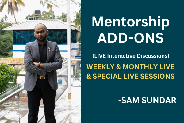 But the Most Unique Approach of this Mentorship is all about “MONTHLY LIVE SESSIONS” on Saturdays or Sundays where Mr. Sam Sundar present to the members in a “Meeting” Style Live and encourage two way discussion